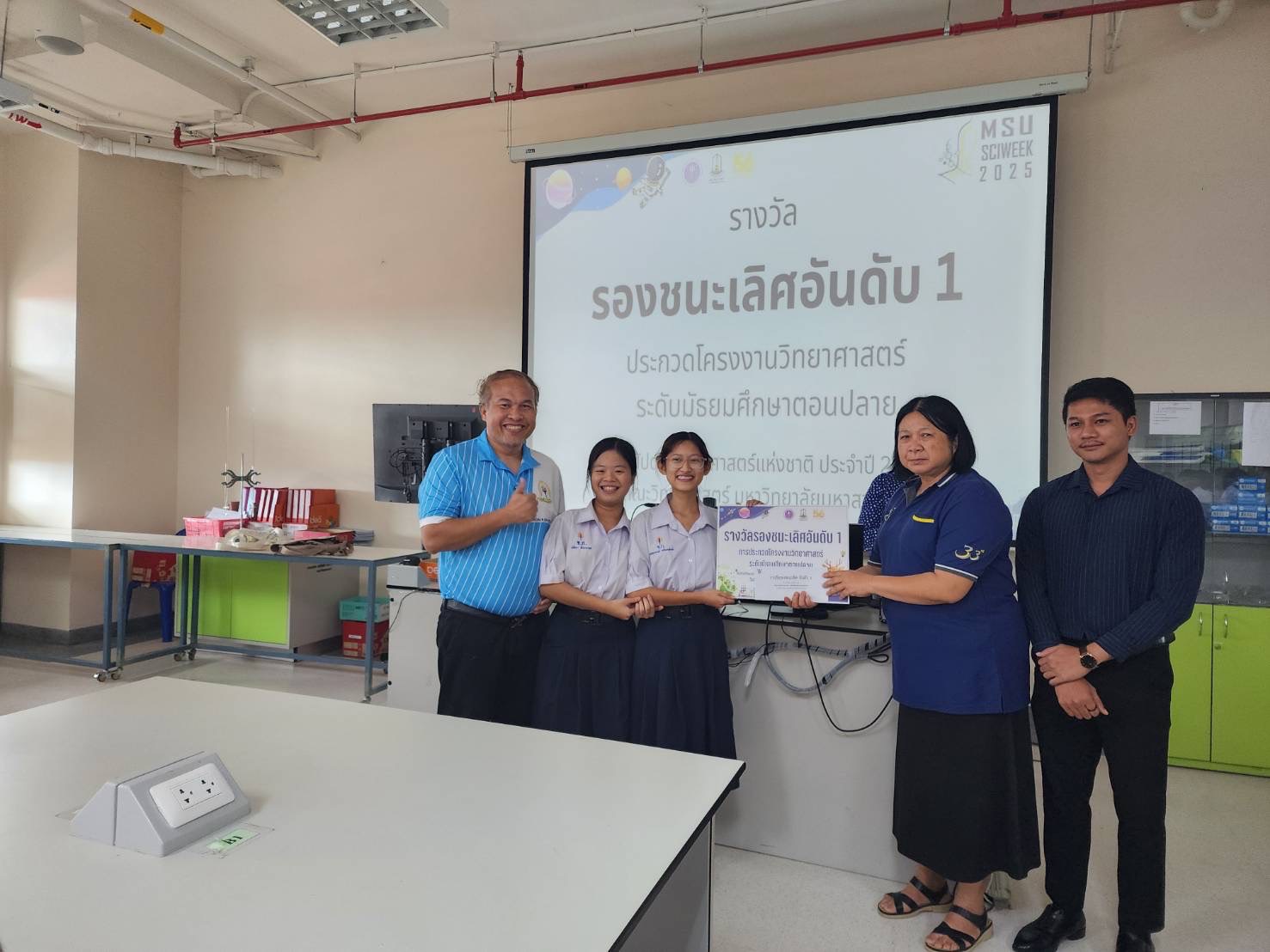 🎉ขอแสดงความยินดีกับกลุ่มสาระการเรียนรู้วิทยาศาสตร์และเทคโนโลยีในการประกวดโครงงานวิทยาศาสตร์ ม.ปลาย สัปดาห์วิทยาศาสตร์ ปี 2568 ในวันที่ 15 สิงหาคม 2568 มหาวิทยาลัยมหาสารคาม ผลปรากฏว่า โรงเรียนขอนแก่นวิทยายนได้รับ 2 รางวัล ได้แก่