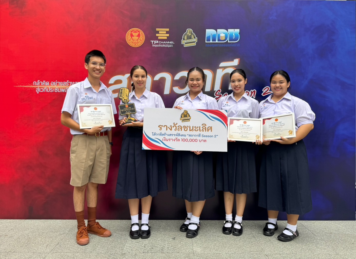 ”รางวัลชนะเลิศ“ การแข่งขันโต้วาทีประเทศไทย สภาวาที ปีที่ 2 “กล้าคิดอย่างสร้างสรรค์ สู่เวทีประชันพลังโต้วาที”