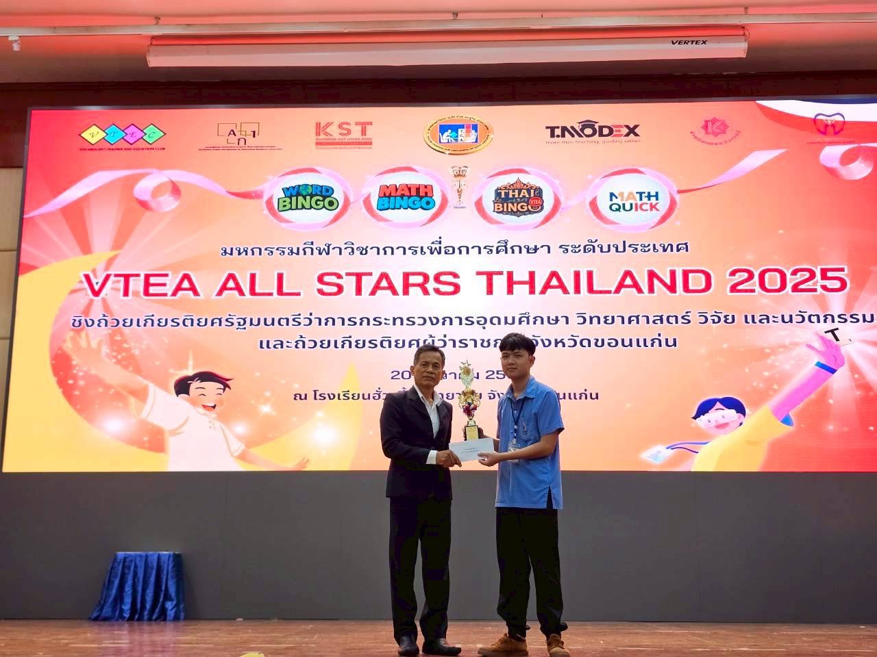 การแข่งขันมหกรรมกีฬาวิชาการเพื่อการศึกษา ระดับประเทศ VETA ALL STARS THAILAND 2025 ชิงถ้วยเกียรติยศรัฐมนตรีว่าการกระทรวงการอุดมศึกษา วิทยาศาสตร์ วิจัยและนวัตกรรม และถ้วยเกียรติยศผู้ว่าราชการจังหวัดขอนแก่น ณ โรงเรียนฮั่วเคี้ยววิทยาลัย เมื่อวันที่ ๒๐ สิงหาคม ๒๕๖๘