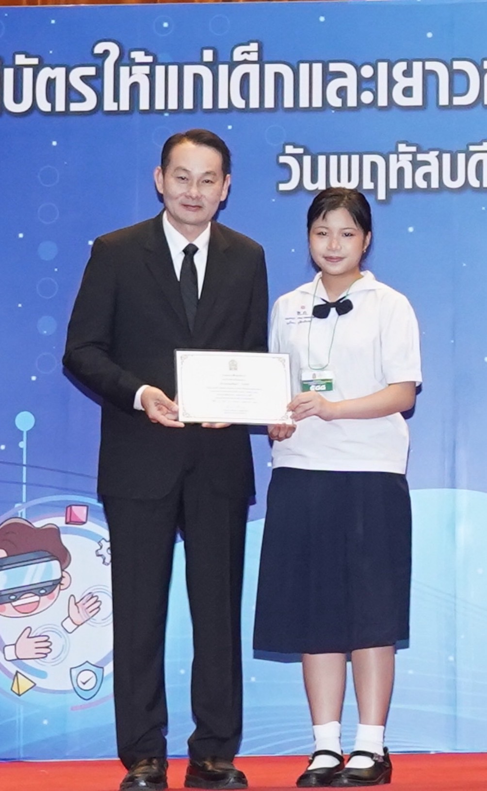 โดยได้เข้าร่วมพิธีรับเกียรติบัตรเด็กและเยาวชนที่นำชื่อเสียงมาสู่ประเทศชาติ ประจำปี 2569 จากนายสุเทพ แก่งสันเทียะ ปลัดกระทรวงศึกษาธิการ