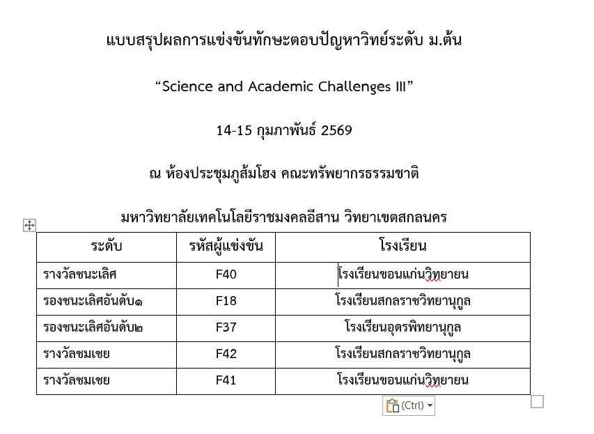 การแข่งขันตอบปัญหา ระดับ ม.ต้น “Science and Academic Challenges III”